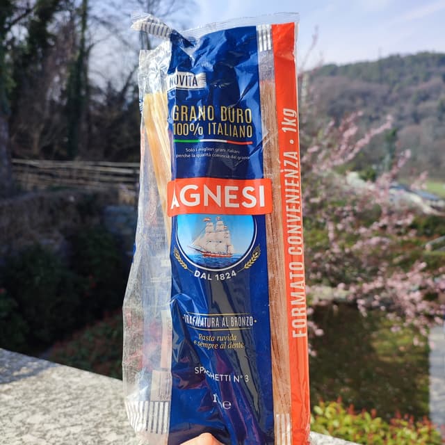 Li avevo in dispensa da un po', ora sto più attenta a preferire pasta con confezione di carta o compostabile. Intramontabili spaghetti da sempre formato preferito del mio ragazzo, anche il formato da 1kg a casa nostra dura massimo 3 pasti 🙃