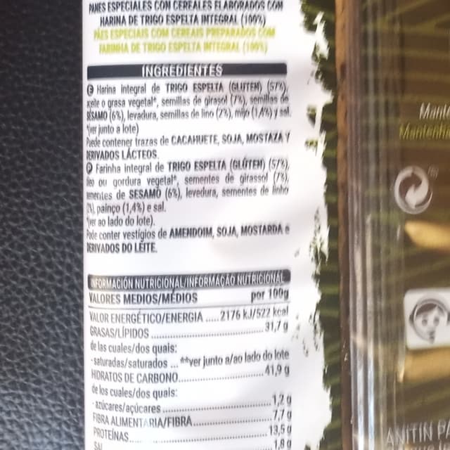 Panes especiales con cereales y semillas, elaborados con harina de trigo integral de espelta y aceite de girasol alto oleico. Me sorprendió gratamente. Todo lo que es "integral" suele ser más bien seco e insípido. En este caso no me pareció así. Me gustaron más que otras rosquilletas.