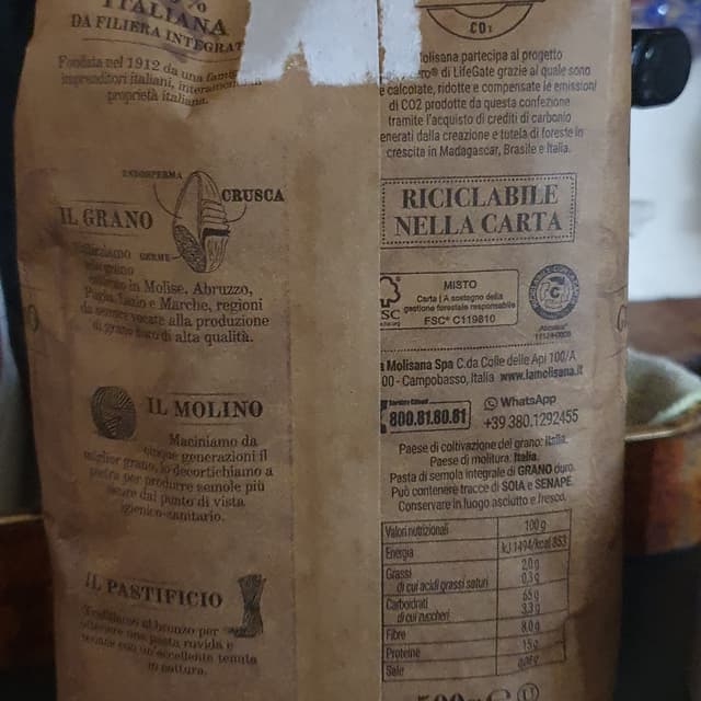 Ottima pasta sia integrale che non ,tiene molto bene la cottura. Confezione in carta .Buona qualità/prezzo
