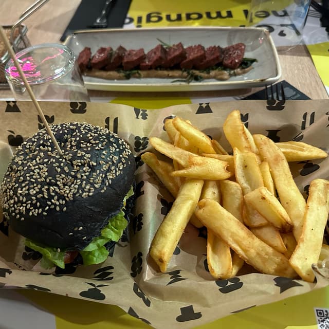 Panino nero con Beyond burger, bacon grigliata, pomodoro, insalata e salsa bbq. Purtroppo il panino è arrivato freddo e risultava gommoso. Il condimento invece è molto buono.