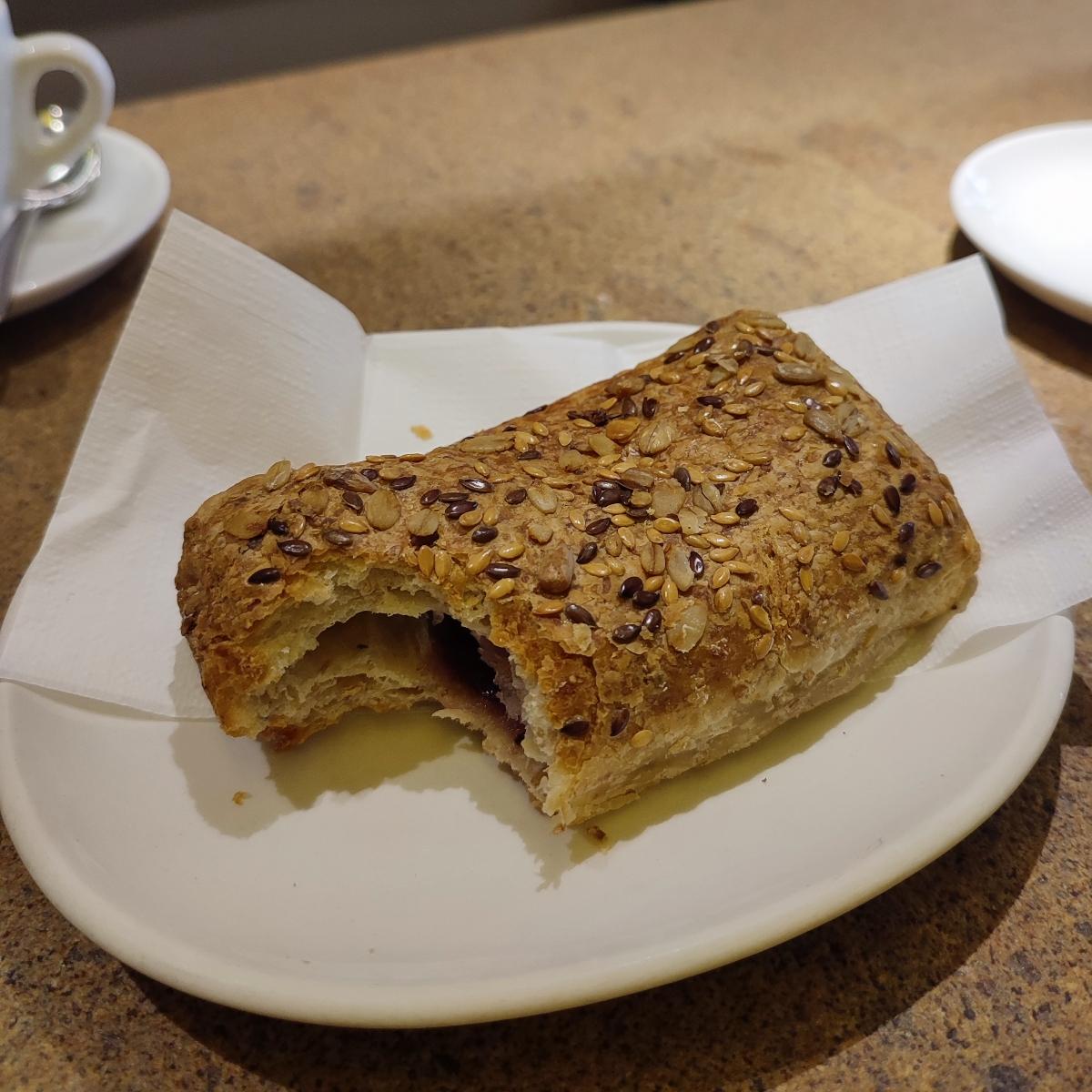 Siamo entrati più volte in questo bar e abbiamo notato che hanno diverse scelte di brioche vegane. Questo è il classico saccottino surgelato che si trova spesso, non è la brioche che vi cambierà la vita ma non è male e fa sempre piacere trovarlo nei bar.