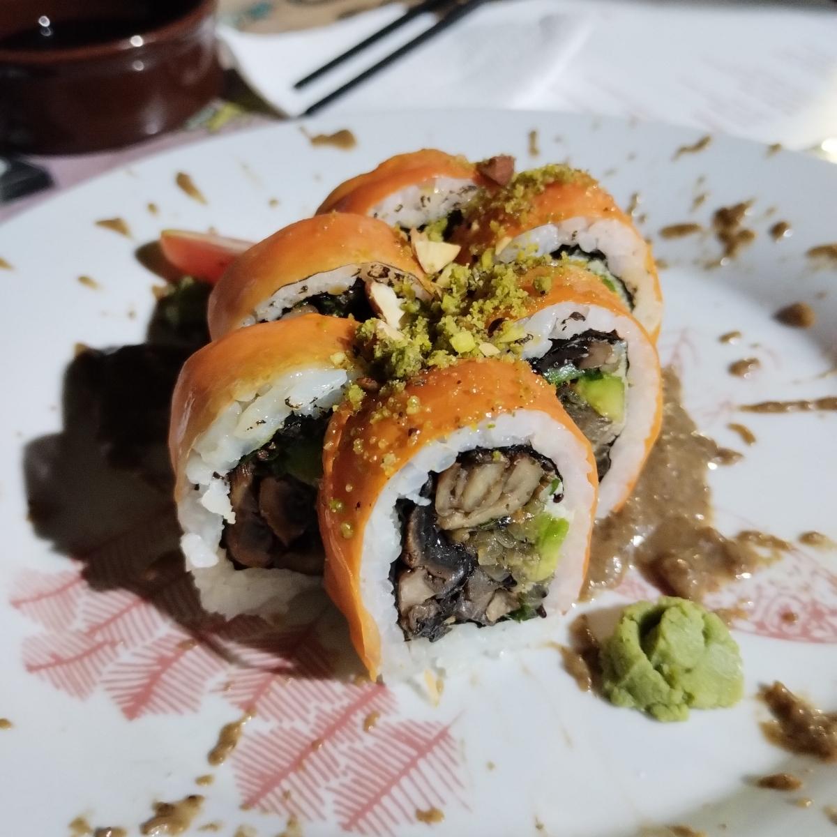 Bomba mal. Vienen con champi, queso de cajú, cebolla caramelizada, palta y cobertura de zanahoria. Me parecio un poco caro, vienen de a 10 piezas, $2450 (marzo 2023).