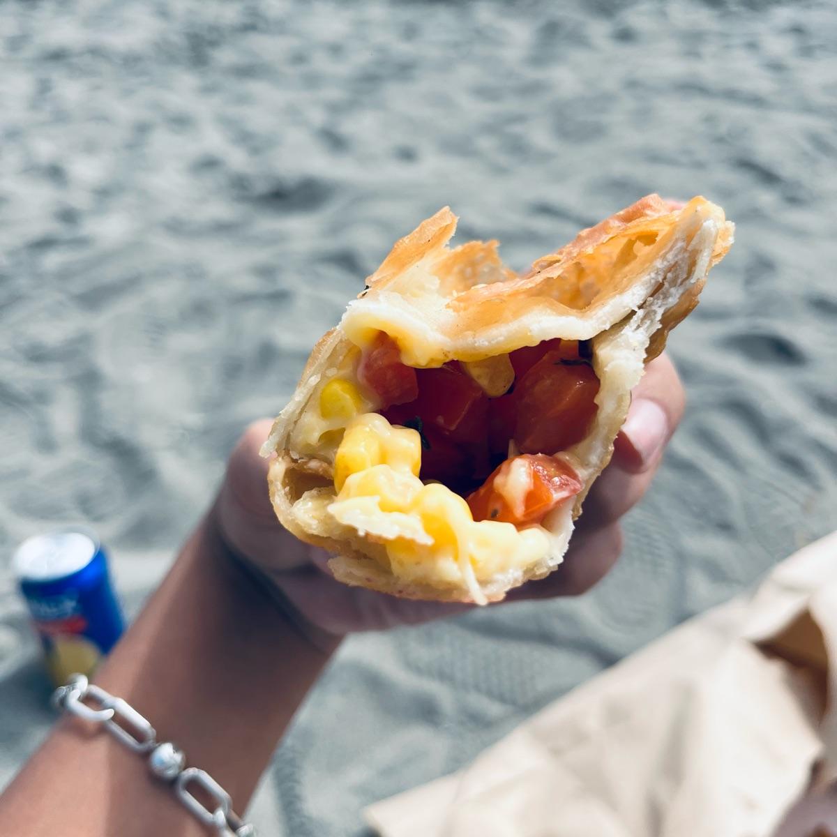 Estaba súper buena! Tenía mucho queso y relleno (tomate, choclo, albahaca) en comparación a otra que había comprado en el local de reñaca.