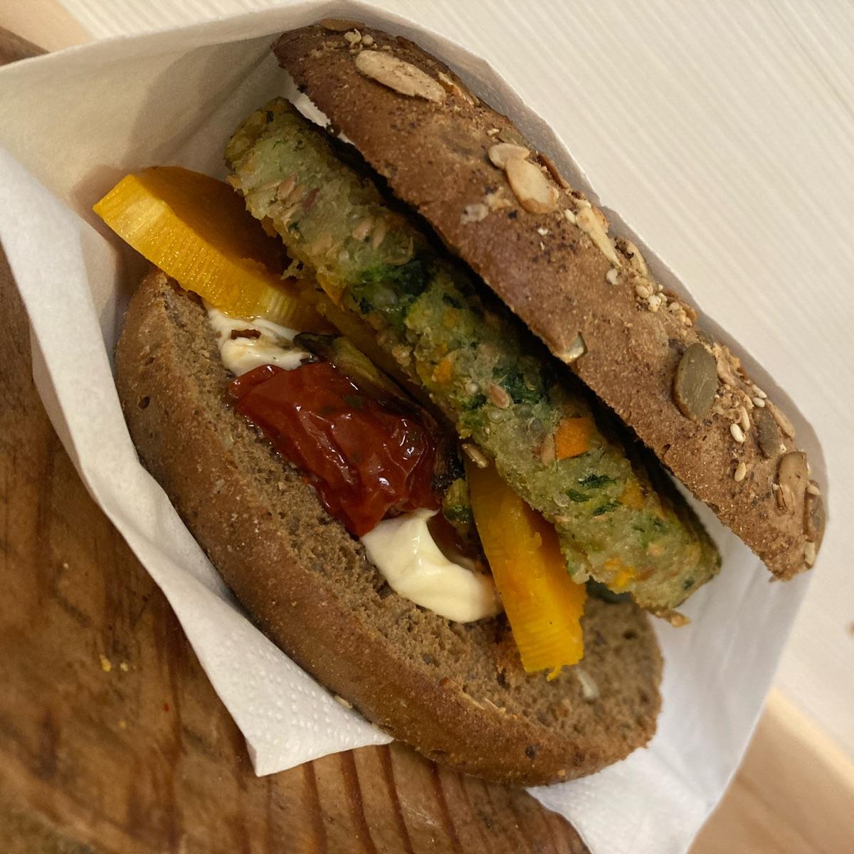 Burger molto sfizioso, alla quinoa e zucchine. Vasta scelta di ingredienti (io ho scelto zucca e pomodori secchi) e anche di salsine (io ho messo la maio vegana). E infine… si può scegliere anche il pane! Io ho preso quello integrale ( ma c’è anche al carbone, alla curcuma, alla rapa rossa). Insomma locale super friendly e super consigliato in pieno centro. Da provare!
