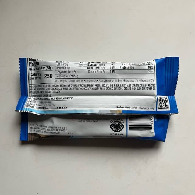 A quick warning before I share my thoughts, because this might be a slightly controversial opinion. Here goes . . . I’ve never really liked #chocolate chip cookies. I think this context is important for my review to read coherently. Unfortunately for me (and fortunately for everyone else?,) this #energybar tasted exactly like a sweet chocolate chip cookie, with a touch of cinnamon. Since this is clearly an idiosyncrasy of mine, in the interest of fairness, I’ve rated it 4/5 in the taste category. As with other Clif bars, it was fairly sticky; the oats and crisped rice provided just enough textural variation to help me finish most of the serving. It did a good job of keeping me full, and the compact size is good for a gym bag or backpack, but I don’t often reach for these — three strikes for the intense sweetness, high price, and chocolate chips.