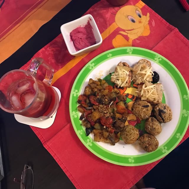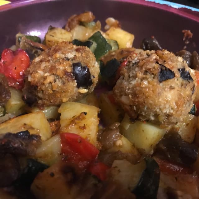 Per questo ho scelto di utilizzarlo per preparare delle polpette vegan con vari gusti. L’ho cucinato come da confezione e poi unito a farina di ceci e a verdure cotte in padella. Impanato e cotto in friggitrice ad aria.