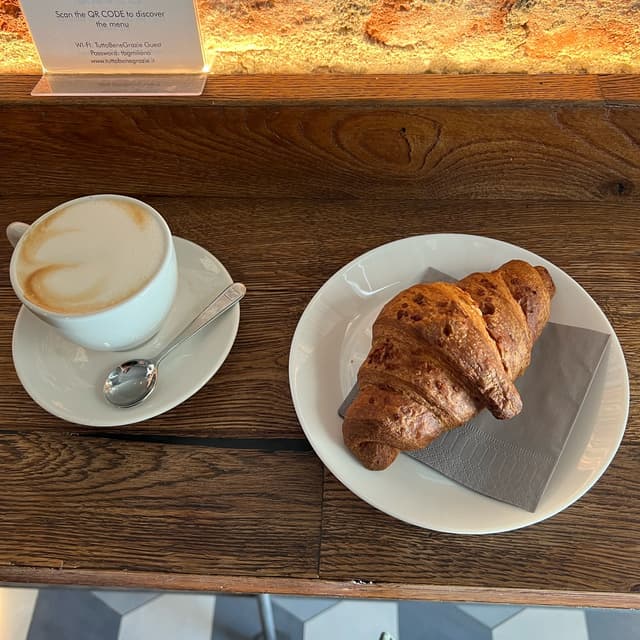 Gradevole cappuccino di soia, sia come gusto che presentazione. Niente da reclamare, anche se preferisco tazze più grandi per i cappuccini (ma questa è una mia opinione). Ben riuscito anche l’inzuppo