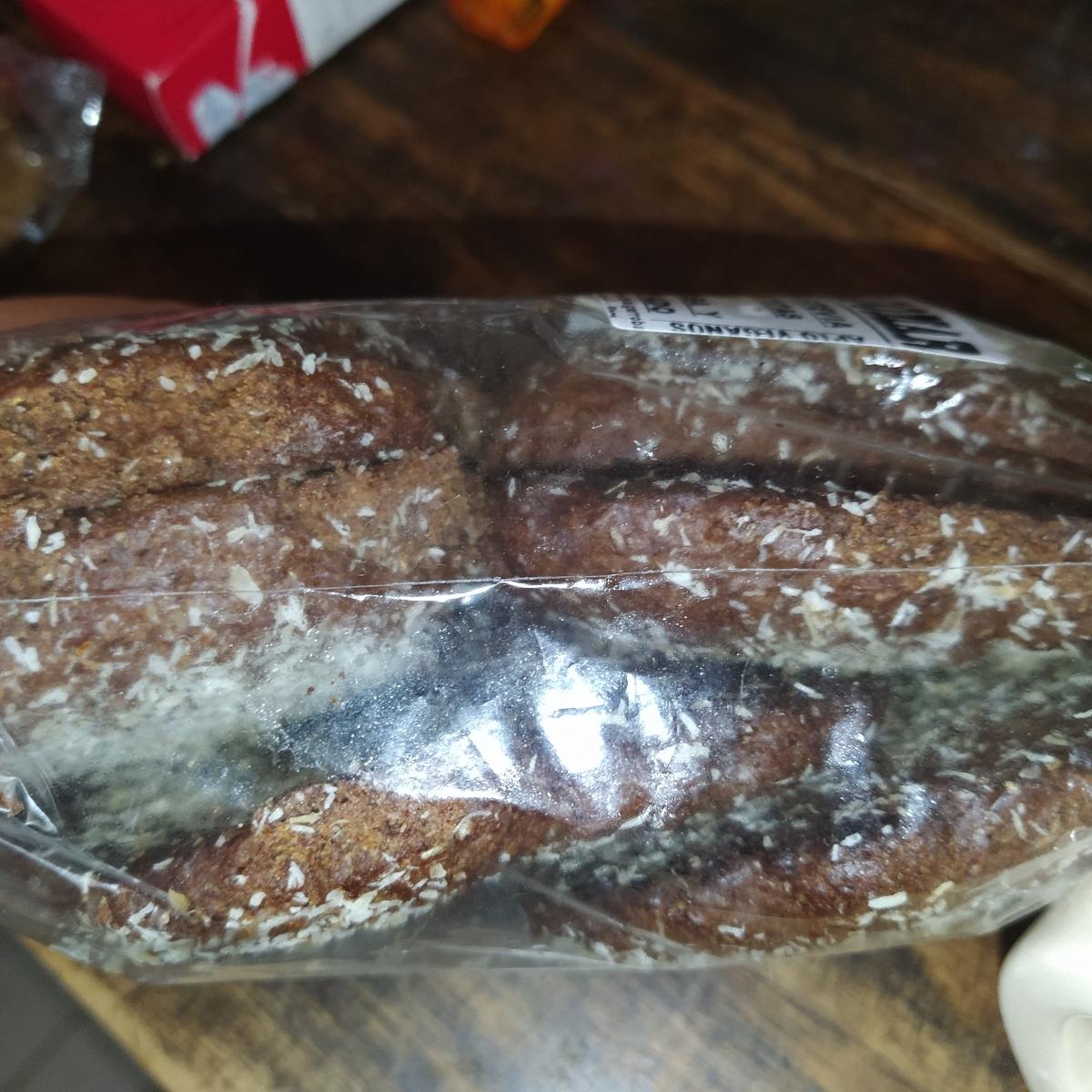Galletitas de Algarroba y Coco. Vienen 6, son bastante grandes y son como bizcochuelo más que galletitas. La nota es comerlas después de que estén en la heladera, a mi me parecieron más ricas así. $350 (a principio de 2023)