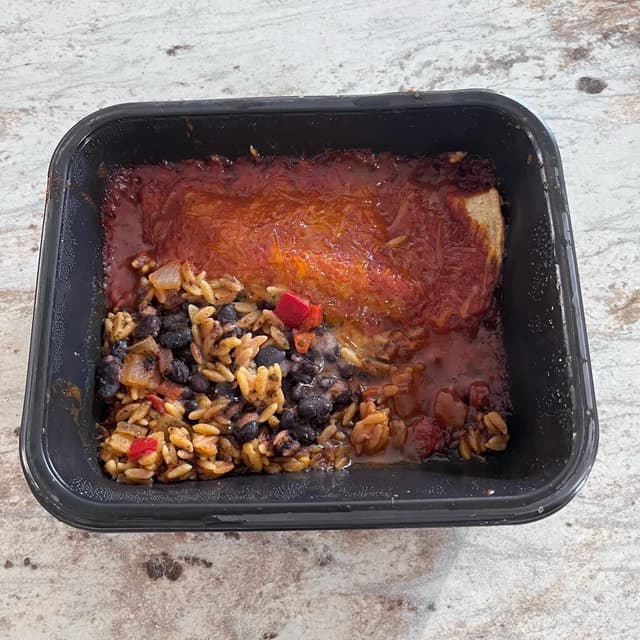 I have trouble finding vegan cheese enchiladas so was excited to try this! It was very good, but I was hoping it would be all cheese filling. And I do love a corn tortilla!#enchiladas #blackbeans