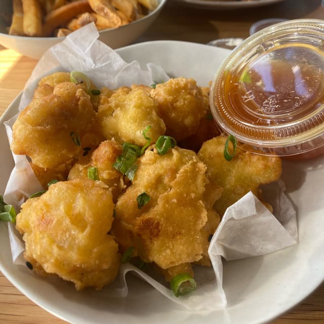 Definitely coming back to this lil’ cafe, very cute vibes and loved the welcoming employees!! The cauliflower dish was definitely crispy!! We enjoyed the orange sauce, nice sweet and tangy and the buffalo sauce was just the right spice!! Went in craving vegan wings and walked out satisfied!!