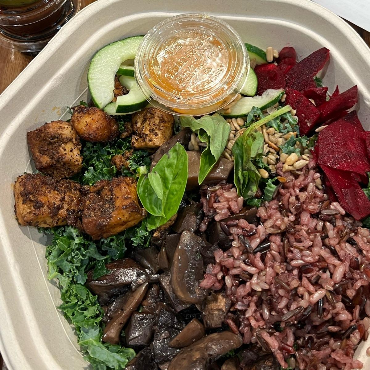 The shroomami bowl is to die for! Nutritious, delicious, and compared to other places for lunch in New York, a pretty good amount of food for the value. I always get extra dressing because just one is never enough.