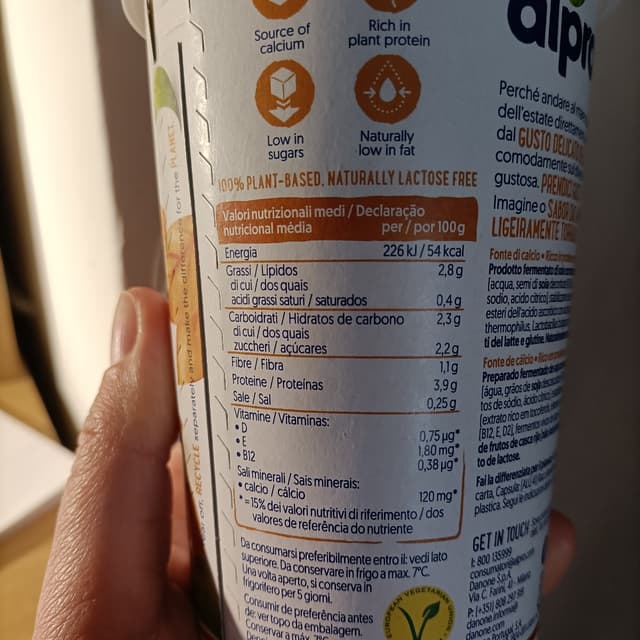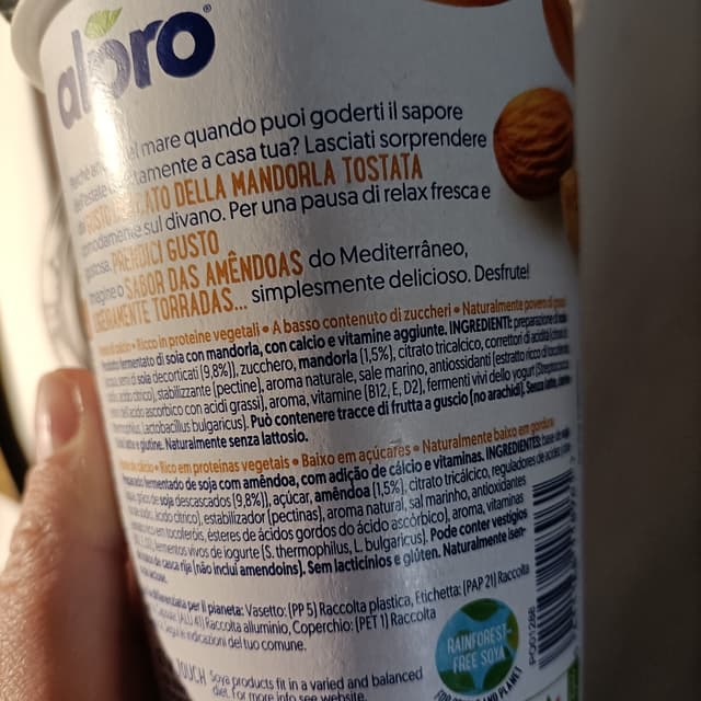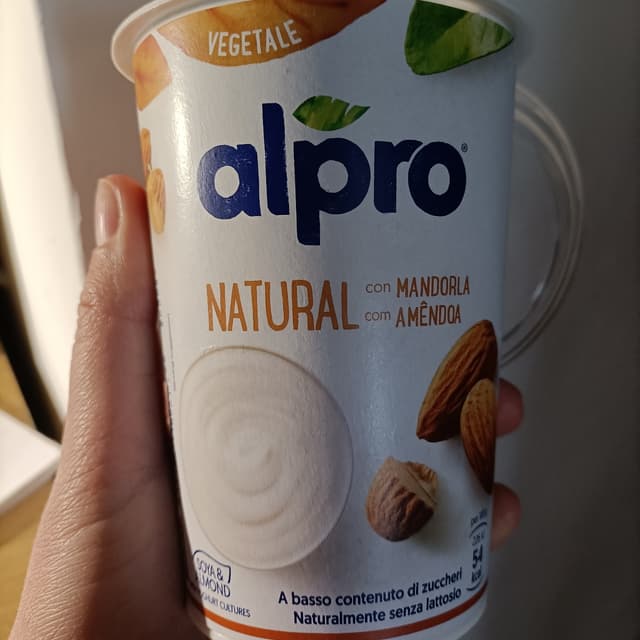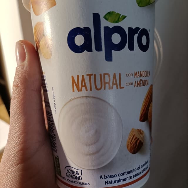 Yogurt a base soia con mandorle, calcio, vitamine e pochi zuccheri. Molto piacevole, la mandorla si sente ed è cremoso. Alpro è una garanzia per me.