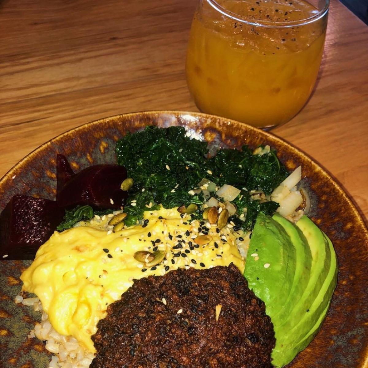 I got the Aussie Bowl with a “Just Egg” and vegan patty on top from their brunch menu. Filling and nutrient-dense but lacking flavor IMO. The just egg needed more “eggy” seasoning and I thought the patty was quite dry/bland. Would be better with more salt or some sort of dressing.