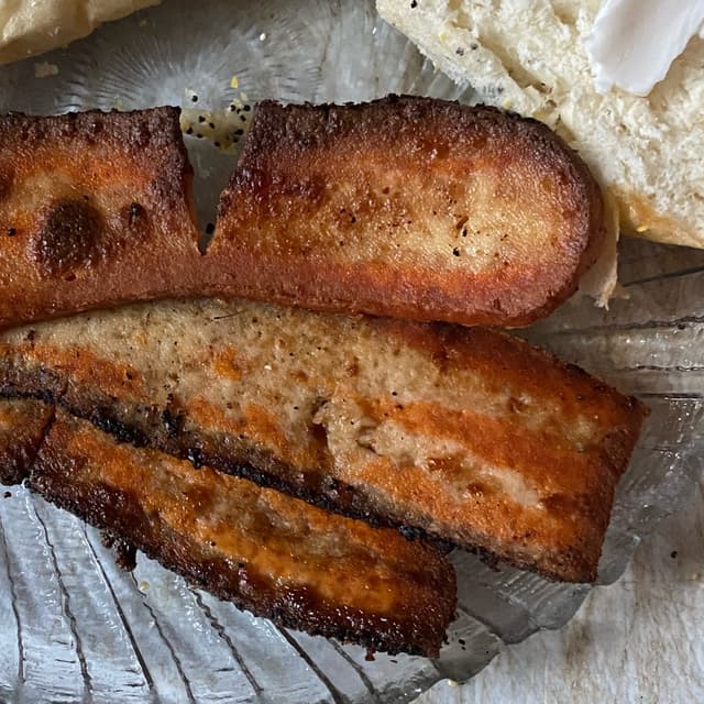 Honestly I tried these when my tiny local vegan grocery store was out of the all vegetarian brand bacon. I’m so glad I did bc it’s delicious!! It’s soy based and very different than a lot of the other vegan bacons on the market but it’s definitely a new favorite or mine. #veganbacon #bacon #breakfast #veganbreakfast #snack