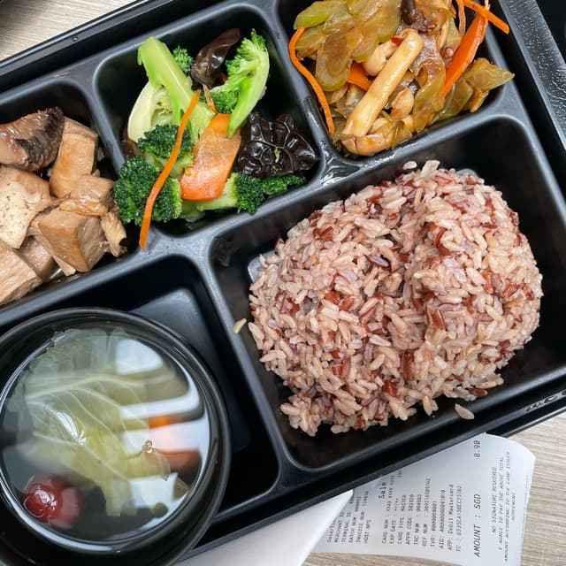 The braised tofu isn’t too bad! It absorbed the flavors pretty well and the broccoli has this wokhey (dk if it’s the burnt smell or wokhey) even tho it’s on the saltier side. Love the bitter gourd :)