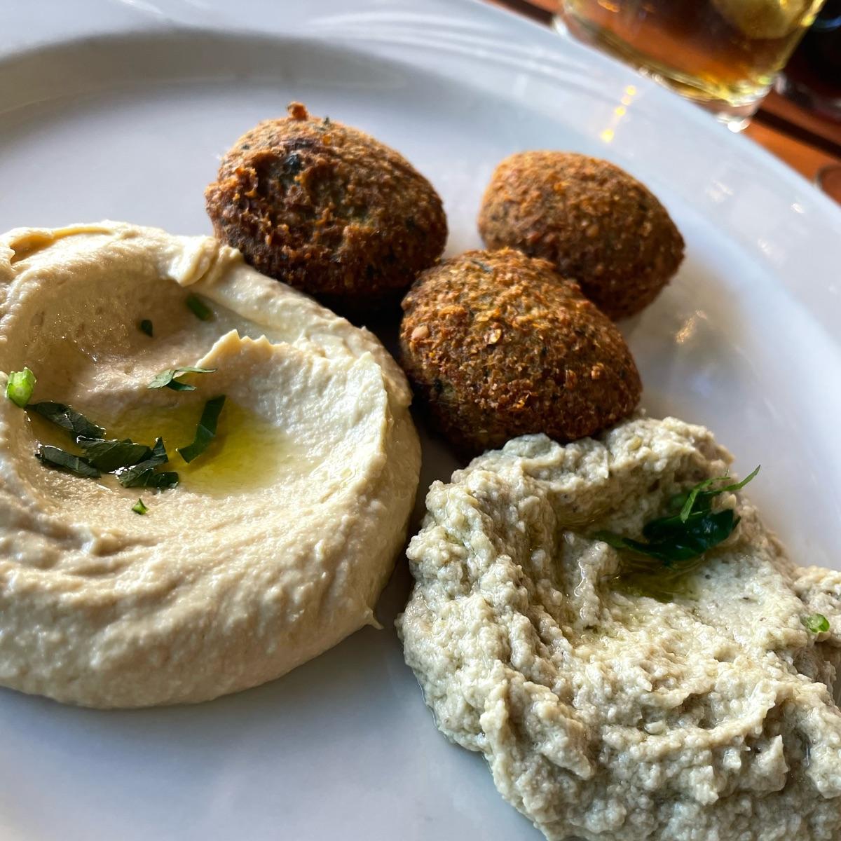 ho un po’ riso perché nel menu di una trattoria tradizionale (quindi pieno di bruschette friarelli menate) l’antipasto vegan era mediorientaleggiante. assolutamente non una lamentela però 😋 perché era mega pazzesco, a partire dai falafel, dal sapore freschissimo! hummus super tahinoso e mutabal anche super buona. ci ho farcito la focaccina liscia che portano come pane