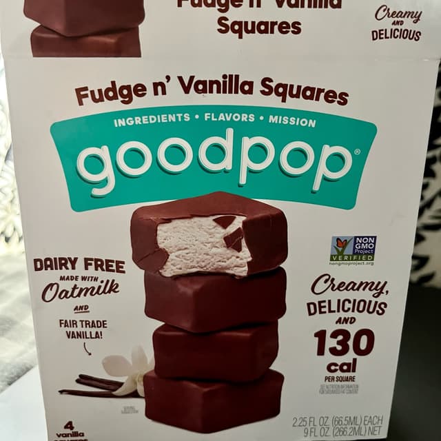 Each box comes with 4 frozen dessert squares individually wrapped in plastic. I like the size of the squares. The chocolate coating is very sweet, but since the squares are smaller, it was not too much for me.