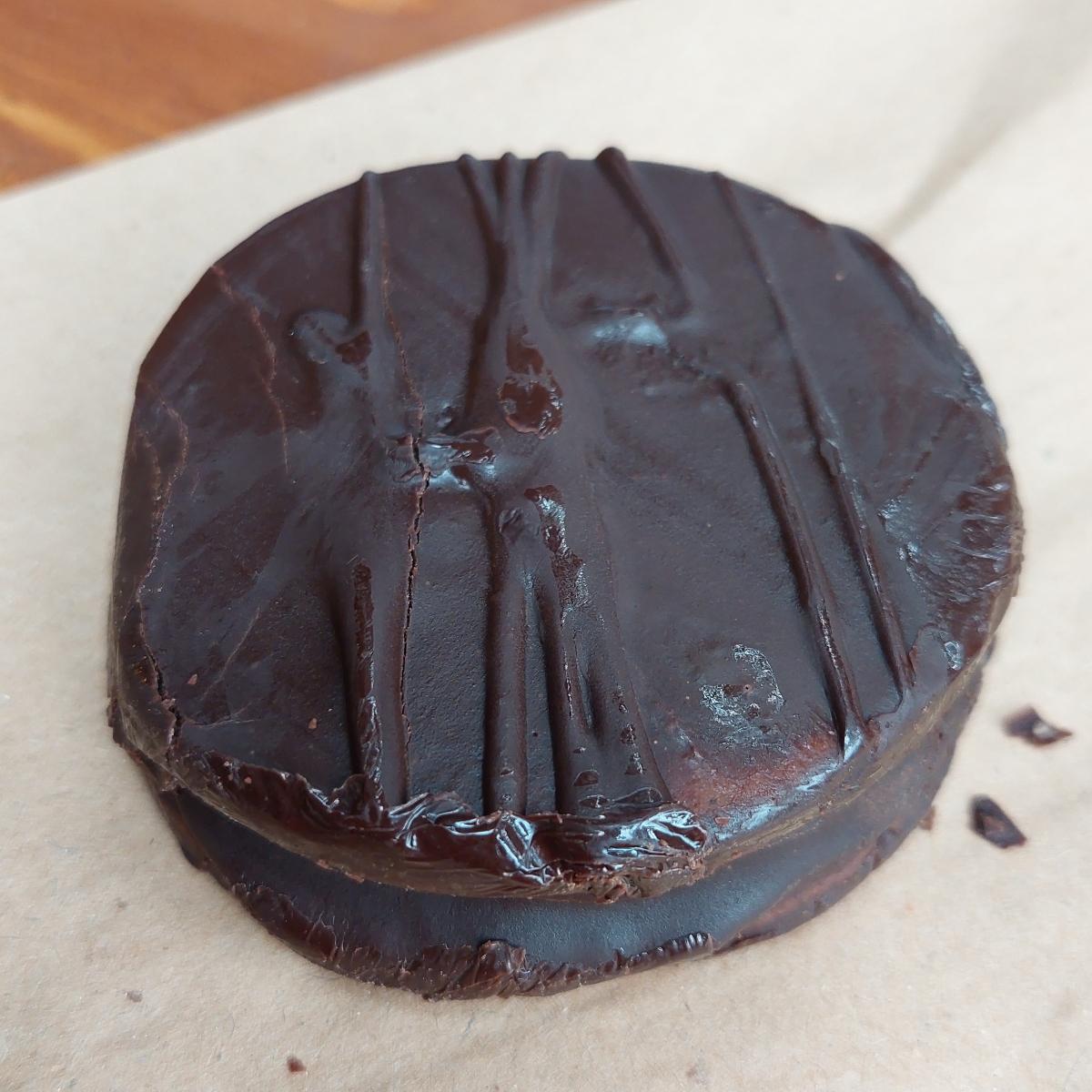 Muy buen alfajor de chocolate, contrario a lo que pensaba no era de sabor a cacao intenso, como suelen ser los chocolates veganos. Recomiendo.