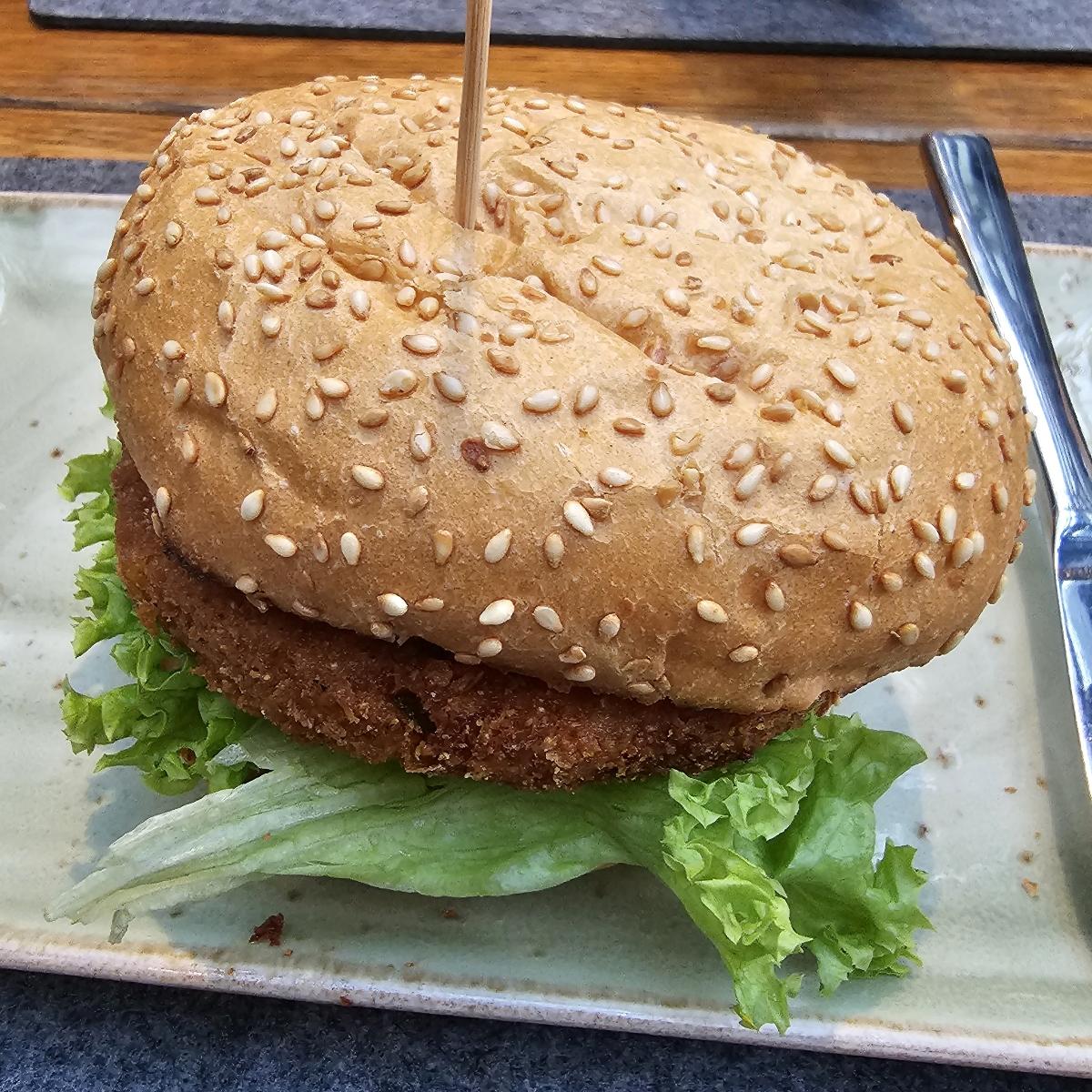 Opted for sourdough bun with sesame seeds, it was light and slightly crunchy. A patty so filling you can hardly believe it's made of cauliflower. Topped with mushrooms drenched in delicious signature sauce.