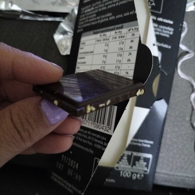Spaziale. Buonissimo! Un po' "salatino", la granella c'è davvero. Nonostante molto fondente non è troppo amaro.