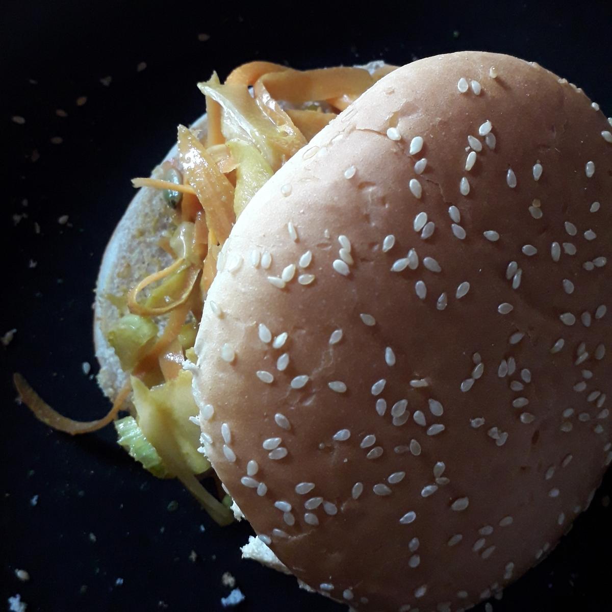 È stato la base per questo pranzo veloce ma buonissimo, fresco e confortevole: pane tostato ripieno di carote, finocchi e mele a julienne marinati in salsa di soia, sciroppo d'agave, tahina e semi vari... da leccarsi i baffi