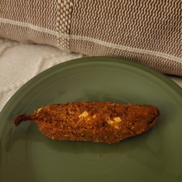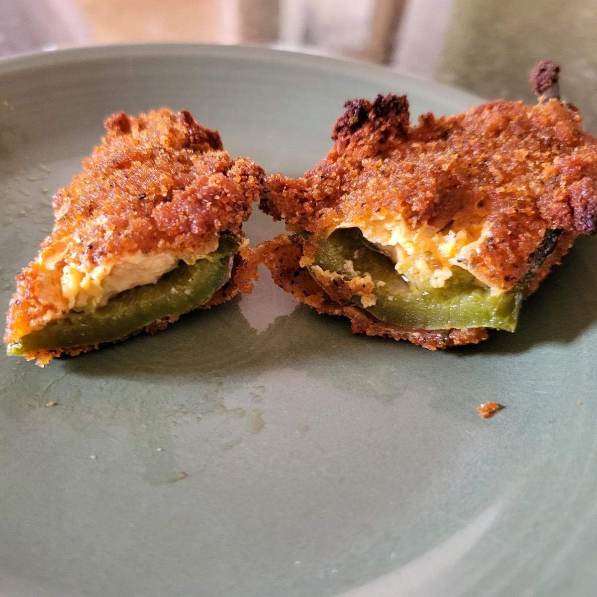I didn't read the description, and expected these to be filled with a vegan cream cheese. I was pleasantly surprised that they were instead stuffed with vegan Teese cheddar cheese. Wonderfully crisp, and just the right amount of heat. 🥵