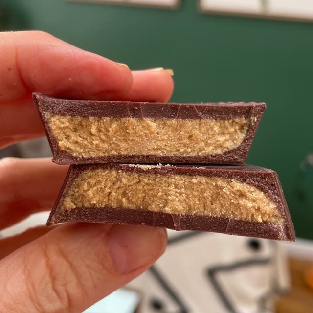 Didn’t love it: they captured the inside of a reese’s peanut butter cup but didn’t love the chocolate. maybe i am just not an oatmilk chocolate fan? #veganchocolate #oatmilkchocolate