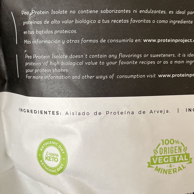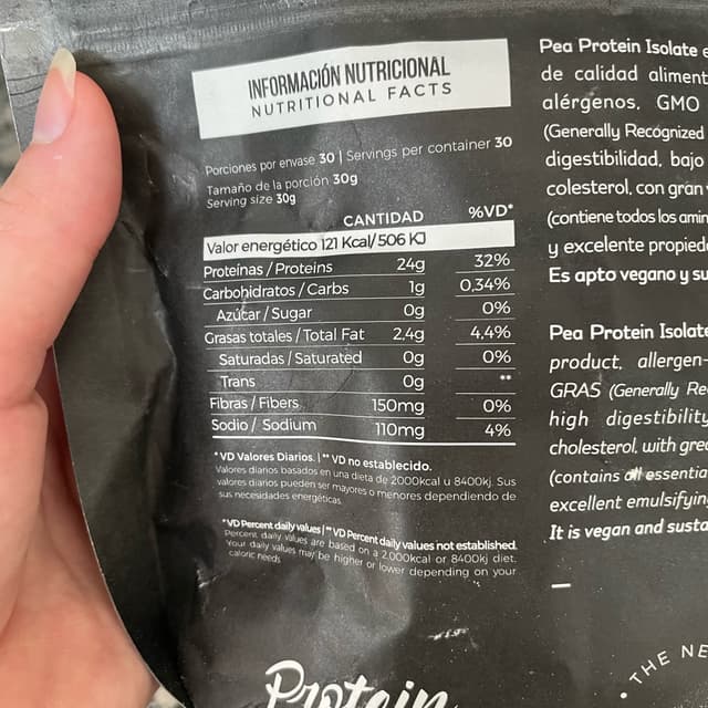 Sabe exactamente a lo que es: proteína aislada de arveja. Se disuelve super bien. De textura es un poco arenosa pero es bastante tomable. Obvio, teniendo en cuenta que yo ya me acostumbré a cosas menos dulces o ultrapalatables. Pero por ahí no a todes les resulta igual. De ingredientes está perfecta porque no tiene nada extra innecesario.