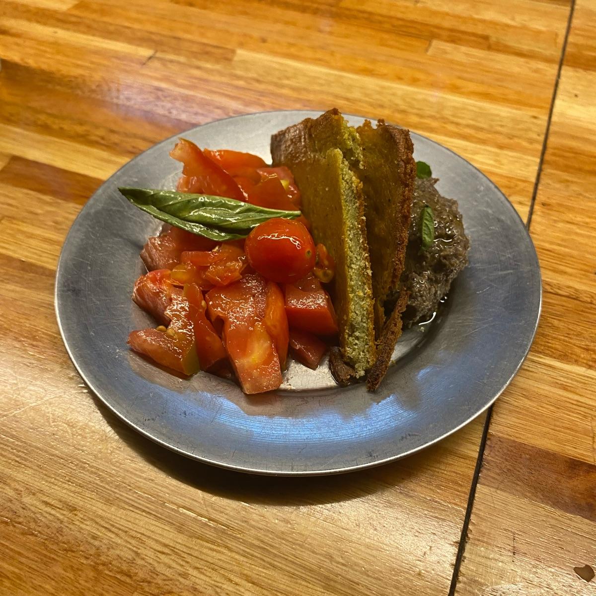 Tremendo pate de hongos, viene con fainá de arvejas, una delicia!