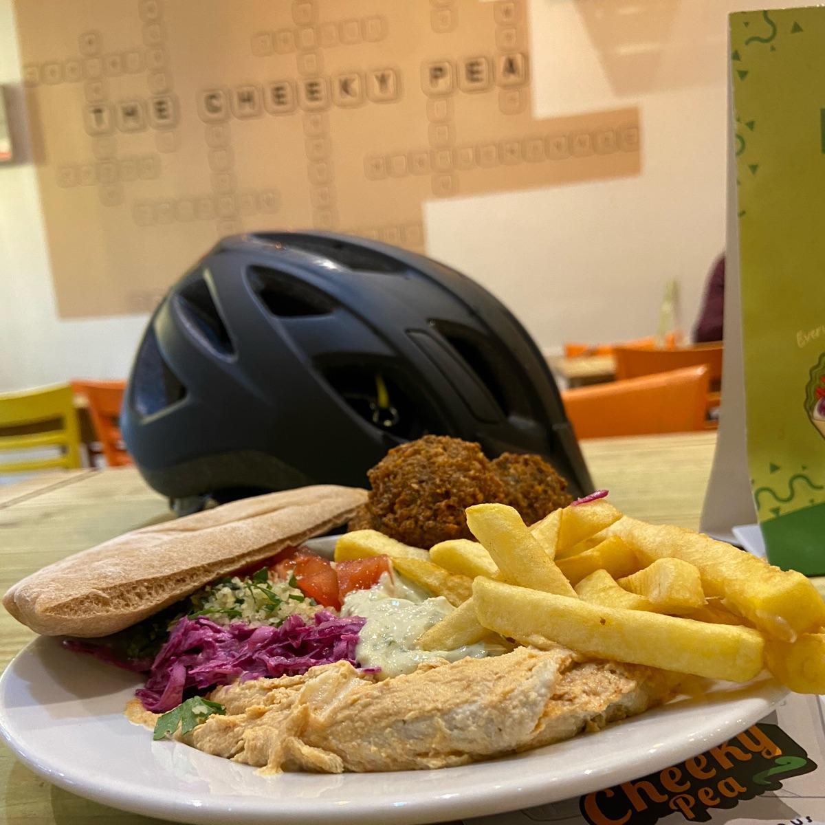 Cheeky pea is a lovely cafe in Kingston-upon-Thames with plenty of vegan options. They have wraps, hummus bowls and salads. Also soups, and some vegan desserts. Food is affordable and yummy.