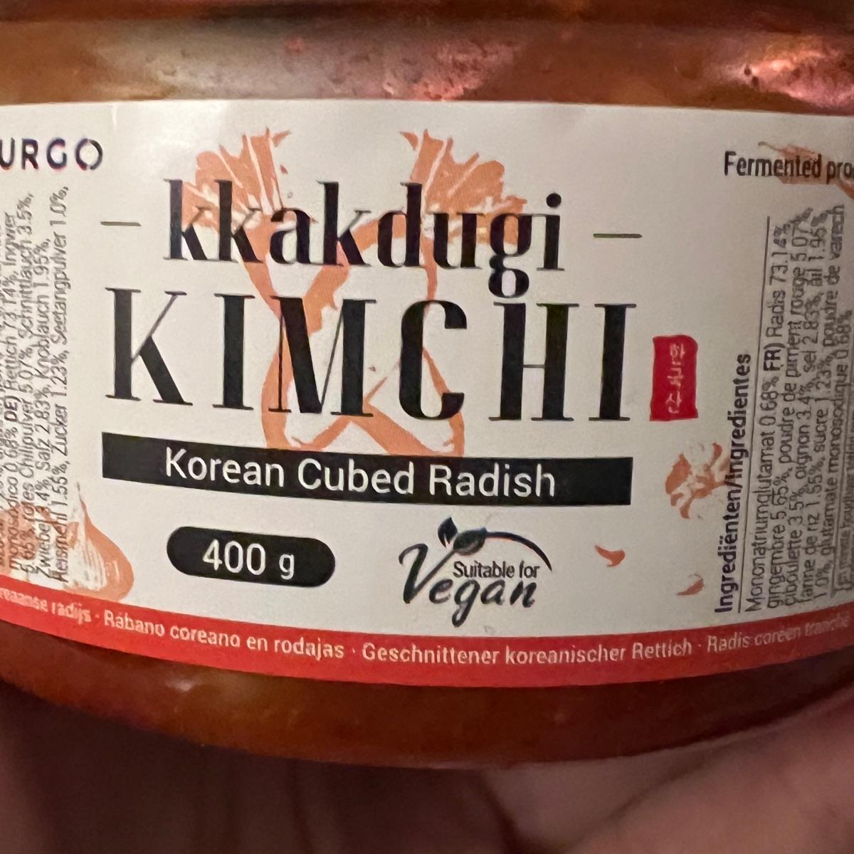 Es kimchi de rábano, viene en cubitos que me parece muy conveniente para picar o comerlo directamente del bote. Al ser un alimento fermentado tiene muchas propiedades buenas y el sabor está muy bien. Cuando se acaba utilizo el caldo para añadir a unos noodles por ejemplo.