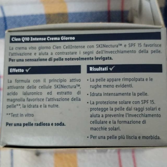 Crema viso giorno, ottima consistenza e profumo delicato. Si asciuga in fretta e ha di positivo che ha un minimo di fattore di protezione, che aiuta sempre.