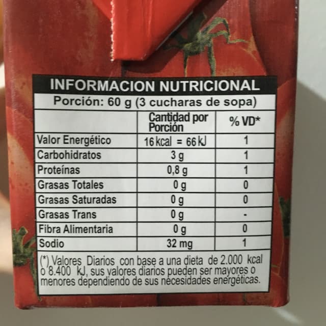 Buen puré de tomate y no me pareció que tuviera tanto sodio como otros.