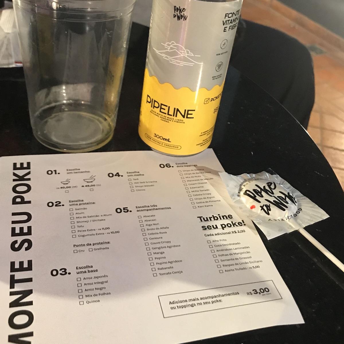 Suco produzido no local, misto de maçã, limão siciliano, gengibre e pimenta caiena.