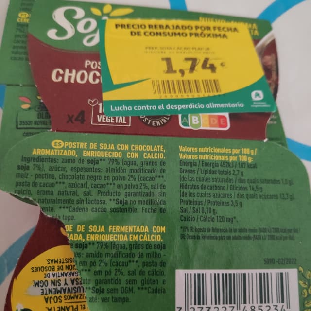 Postre de chocolate a base de soja. Está buenísimo, me recuerdan a las natillas de choco.