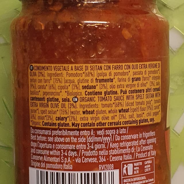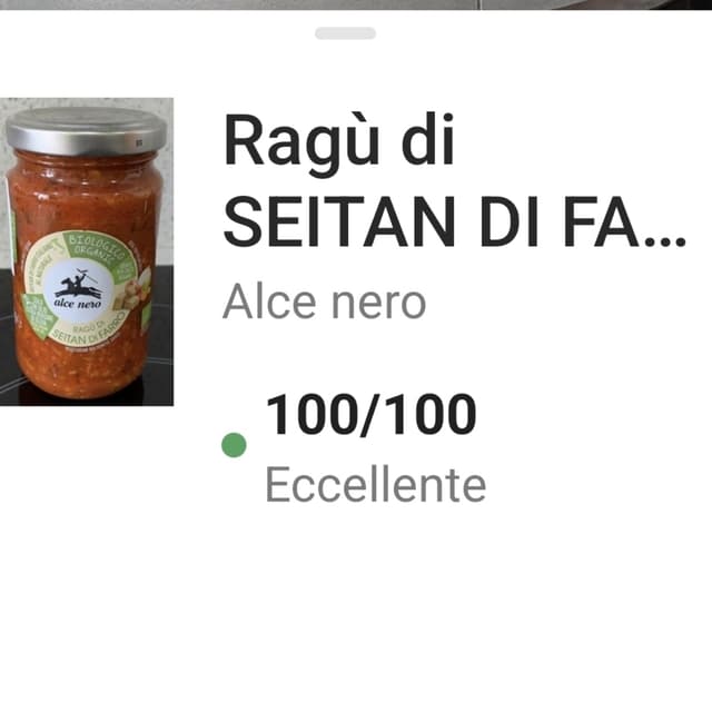 Ottimo ragù di seitan!!! HO voluto assaggiarlo dopo aver aperto il vasetto : così a freddo per avere un'idea. Volevo essere sicura del sapore perché l'ho scaldato assieme a olive Leccino ed è stato un mix che ho gradito assai. Punteggio yuka 100/100 non contiene zucchero come tanti altri sughi di vari brand. Altra cosa che mi piace è che usano per sughi e altri prodotti olio evo. Lo promuovo e lo riprenderò.