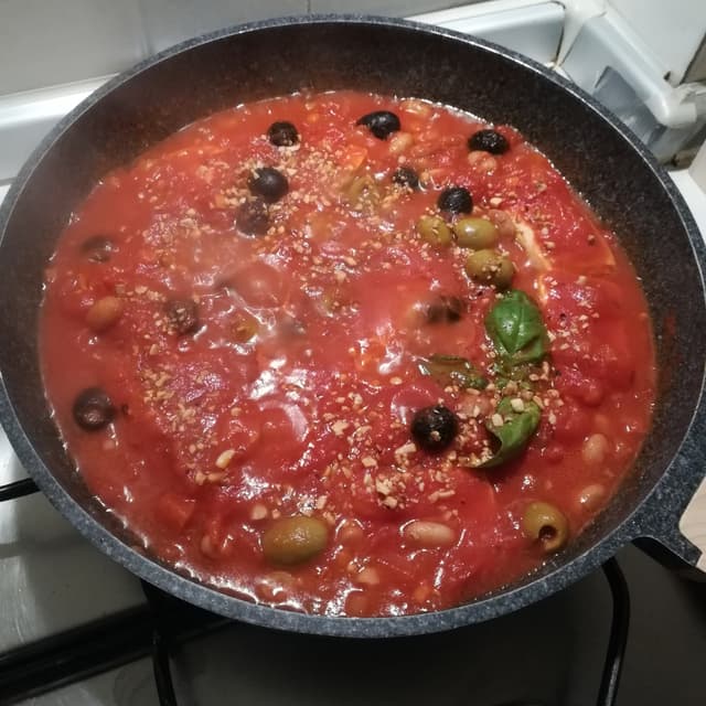 Poi l'altra sera avevo dei fagioli borlotti da far fuori e li ho aggiunti quasi a fine cottura: non ci stavano male, a dir il vero!!! 😅