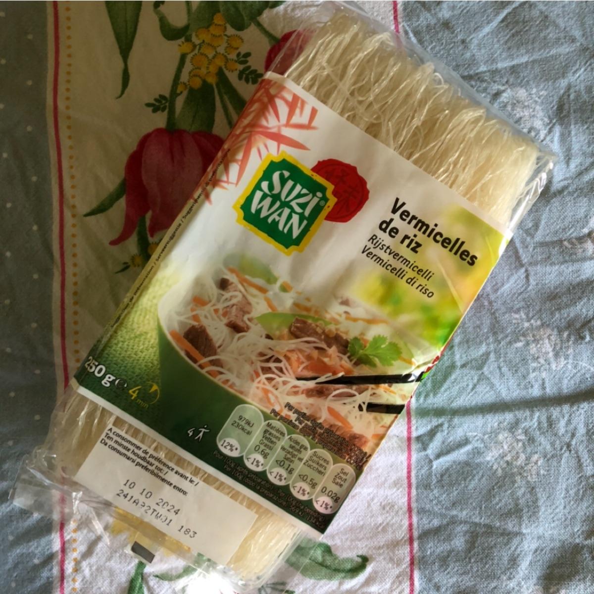 Vermicelli di riso, molto poco calorici ma davvero sazianti perché si rigonfiano di acqua come una spugna, buoni anche se personalmente preferisco quelli di soia, questi sono un po' sciapini e insulsi