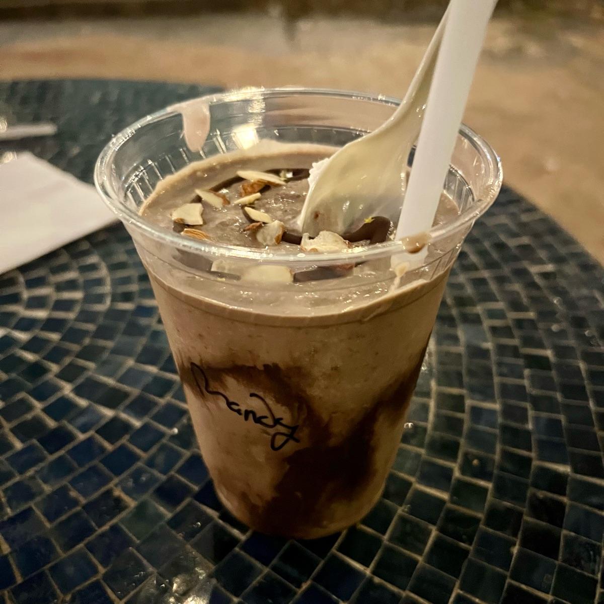 so yummy! 🤤 i’m a sucker for anything chocolate, this one had all things chocolate: from the fudge, to the brownie, & to the almond moon topper 🌙 an absolute magical sweet delicious shake! 🤤🥰❣️🍫