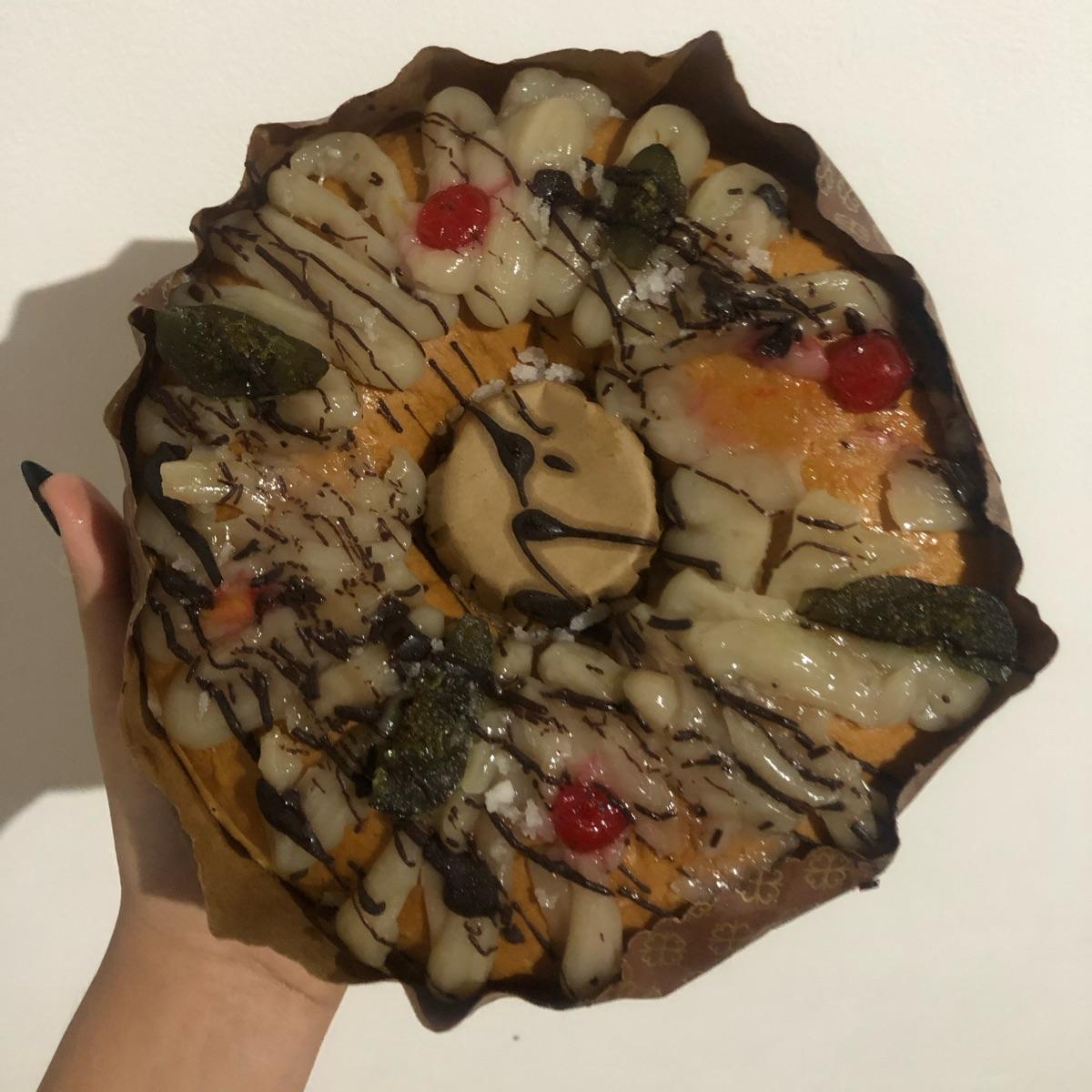 La pague casi $3000 porque tenía ganas de comer rosca,estaba rica pero no estaba acorde al precio,hubiese estado bueno más crema pastelera y más cremosa, la crema se caía porque la pusieron después del horneado. No vale esa Plata