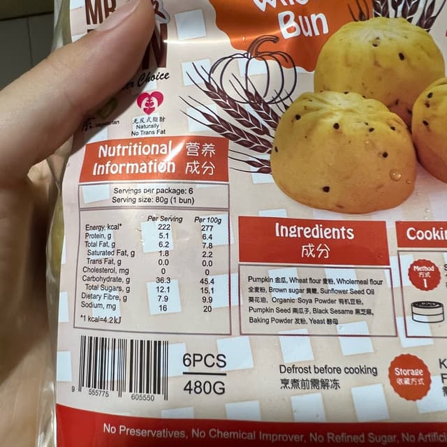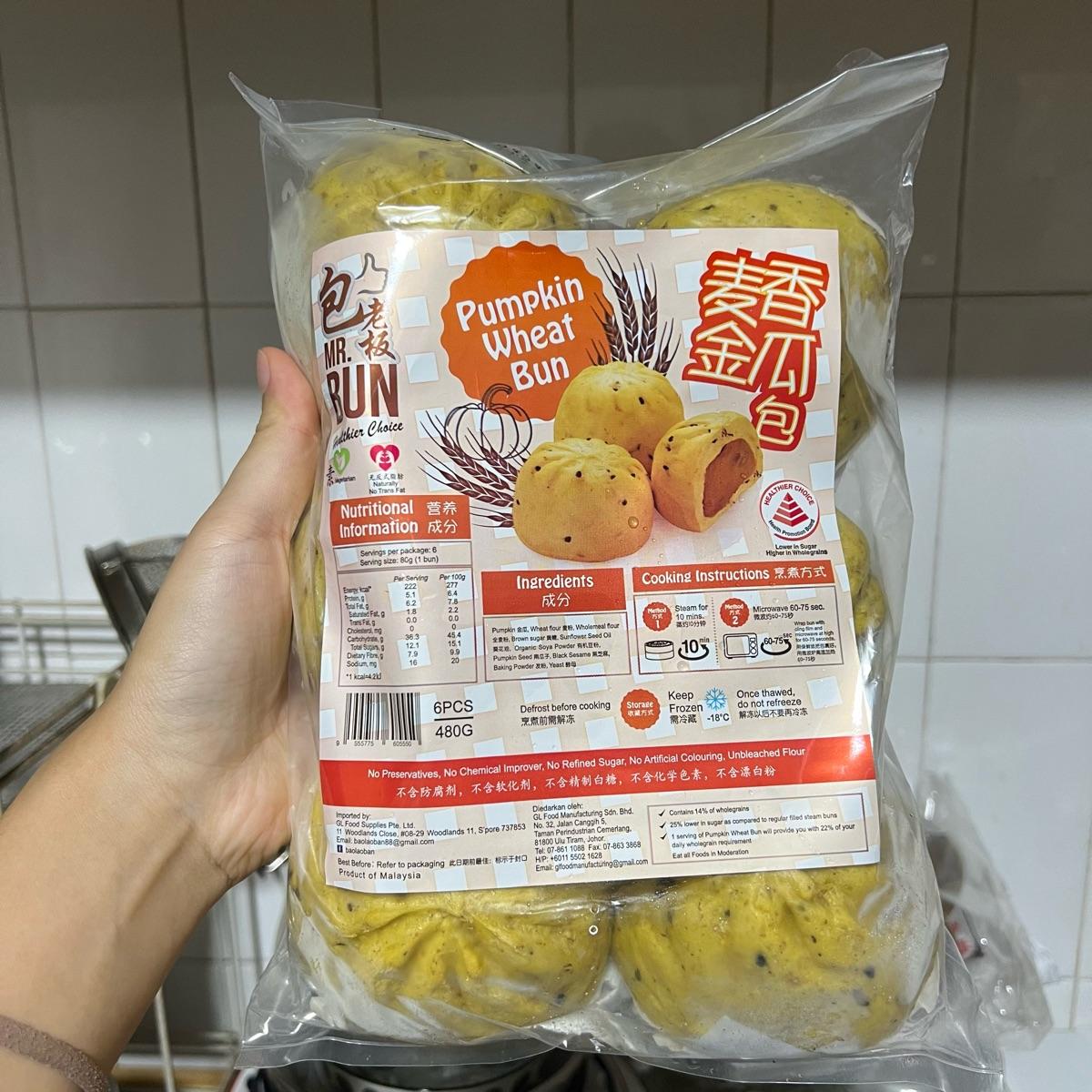 The filling is subtly sweet thanks to brown sugar, and the pao skin is soft and fluffy with the earthy taste of sesame seeds. $5.05 after discount for 6 large buns at Sheng Siong! #sgpaos #pao #bao #steamedbun #pumpkin