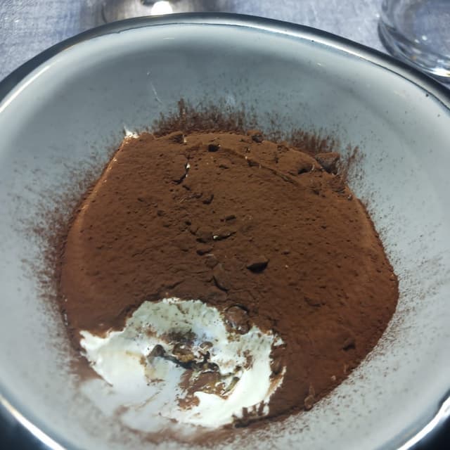 Questo dessert è una poesia per il palato. Savoiardi sono fatti dallo chef e sono croccanti , contrastano bene con la cremosità del mascarpone veg . Mi è piaciuto tantissimo. Ottima ed interessante scelta dei piatti da portata.