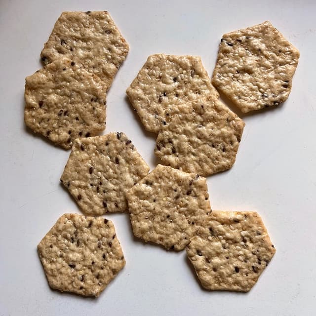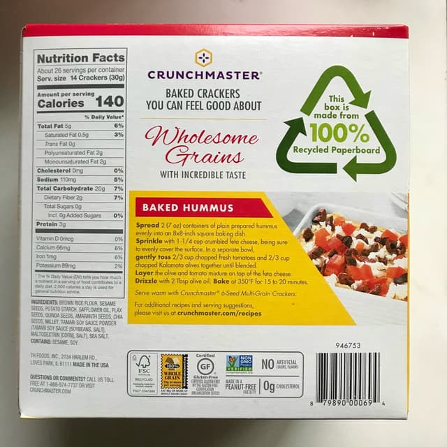 I love these #snacks because they so perfectly satisfy my cravings for crunchiness and a touch of salt. The crackers are thin, crisp, and a bit shiny in a way that reminds me of Japanese arare, which makes sense as they’re also rice-based and #glutenfree. The 6-seed blend adds such a pleasant, rustic texture, too. These crackers are simply delicious on their own, and they’re also fantastic paired with hummus, avocado, etc. They can be purchased (quite economically) at Costco, where you’ll get a big box with two hefty bags inside. I think they’re packaged that way for freshness, although they never last long enough to go stale!