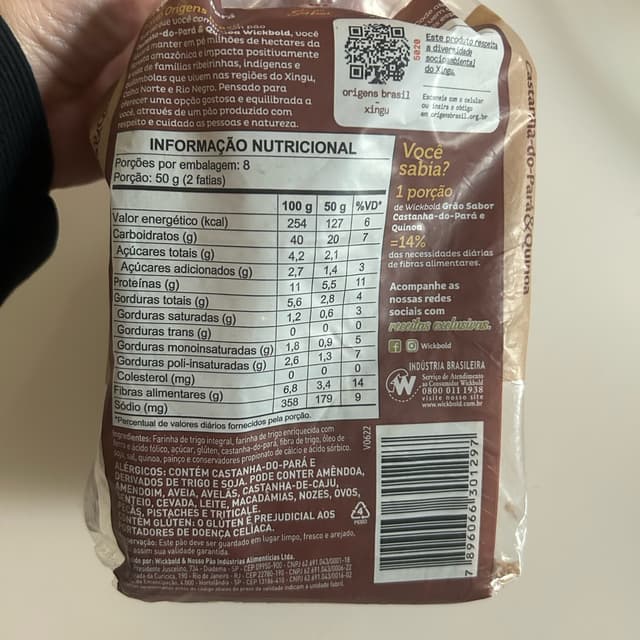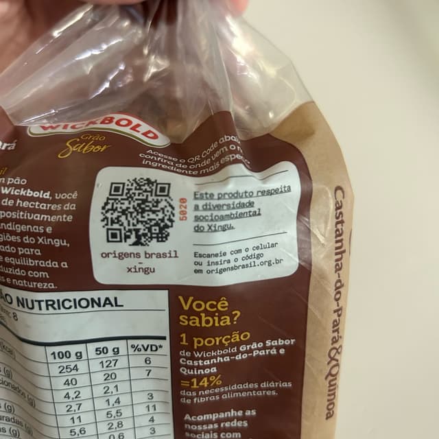 Eu adoro pão integral, mas esse tem castanha do Pará e quinoa, o que o deixa muito gostoso. É possível sentir os pedacinhos pequenos de castanha no pão. Recomendo!