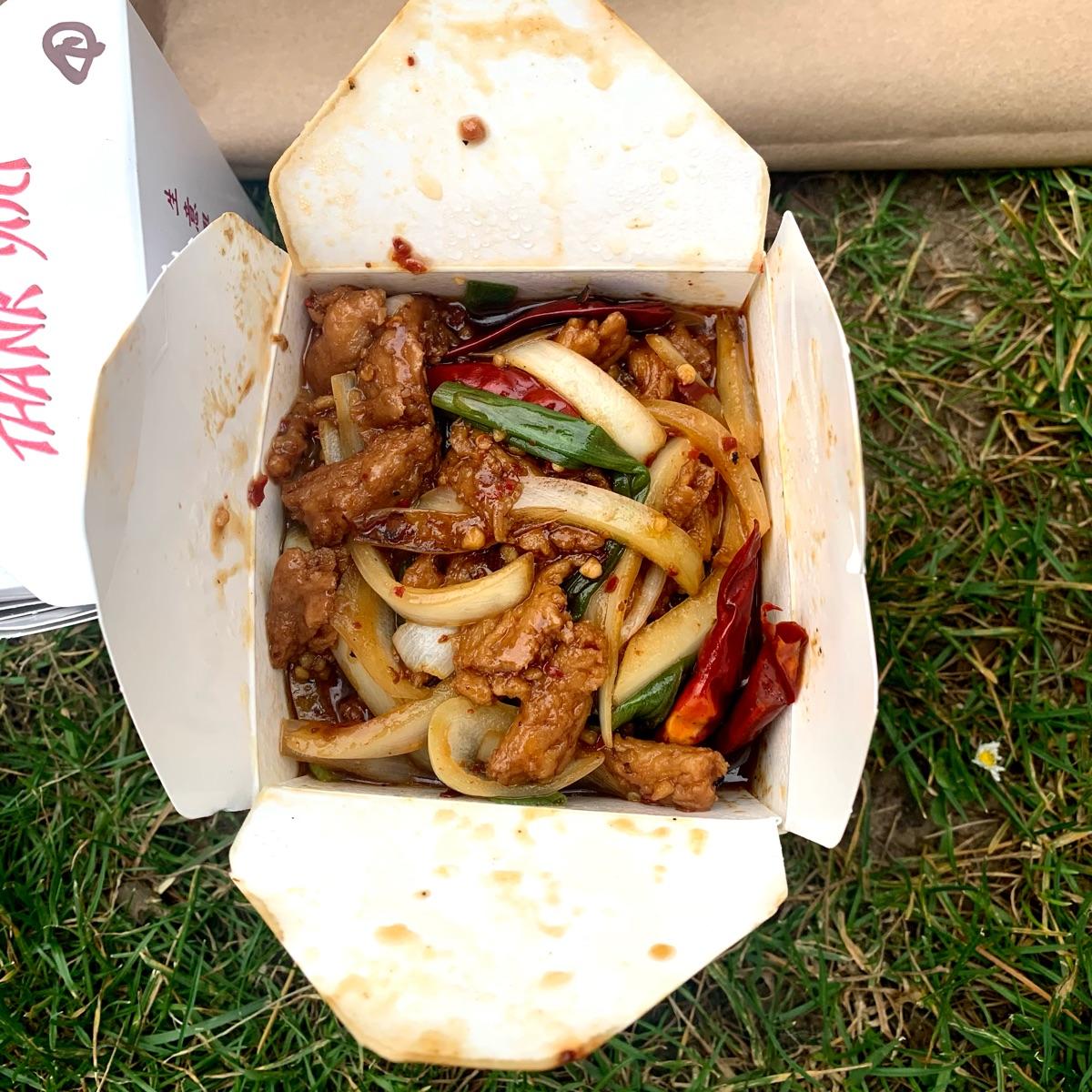 Yum. The Mongolian soy curls were always my second choice from Kung POW. A bit spicy because it includes chili peppers with the sauce, but I’d always pick them out. Soy curls are nice when craving a more chicken-like texture, they cook them really nicely.