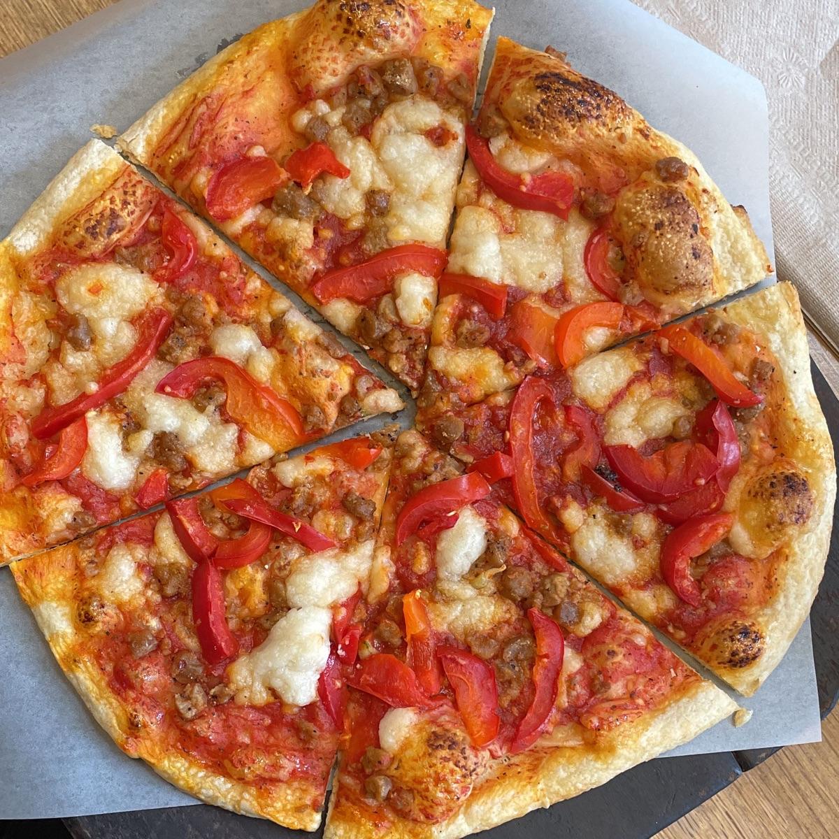 Great Pizza Week special combo of delicious peppers and yummy vegan sausage, had to get a whole pie but also available by the slice