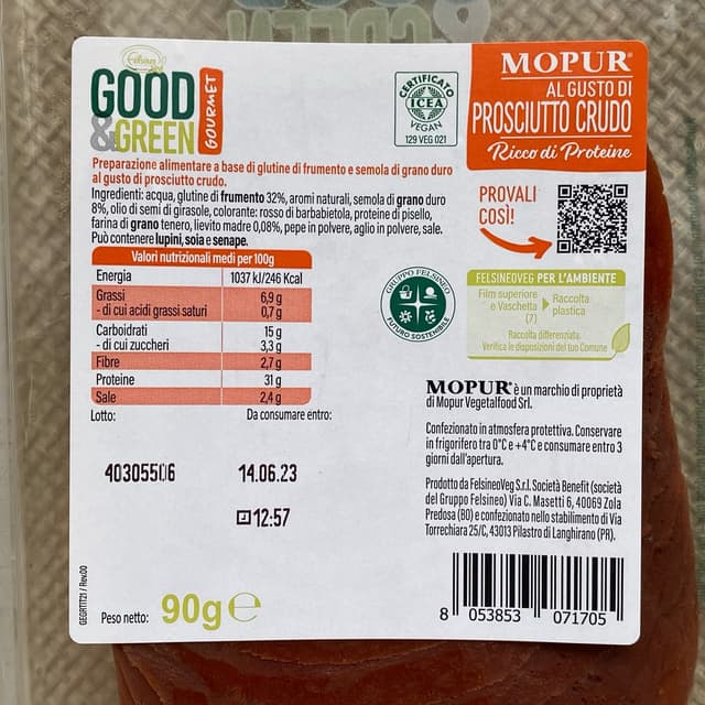 đ Sapore - dipende da come lo si mangia, consiglio di non mangiarlo da solo perchĂŠ non ha un gusto molto definito, assomiglia in parte al prosciutto ma câè qualcosa che manca. Per un effetto piĂš reale accompagnatelo a una salsa (es. maionese) e del pane, oppure provatelo direttamente in un panino!