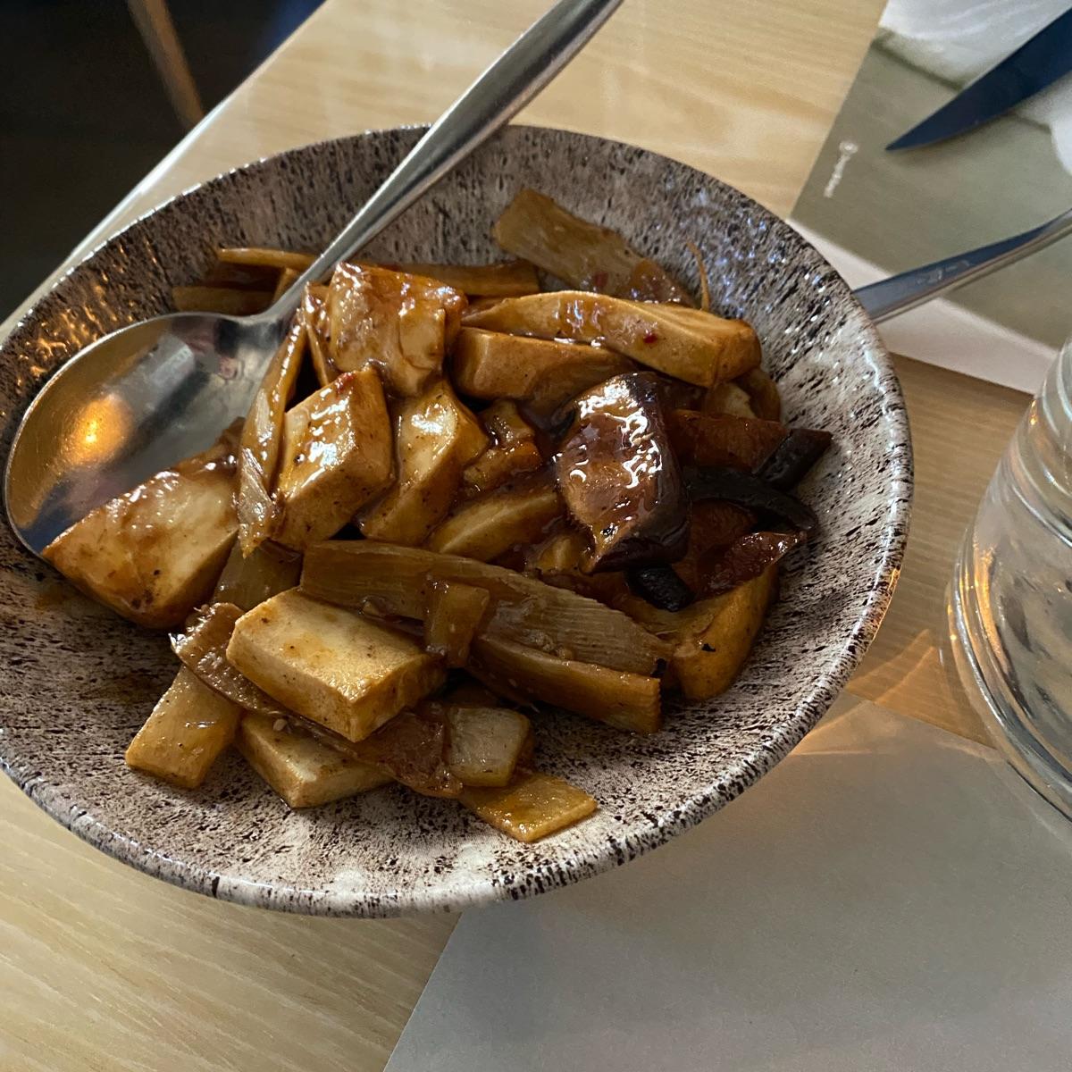 Nonostante questo sia un piatto che si trova comunemente nei ristoranti cinesi, qui mi è piaciuto molto di più. Mentre spesso sa tutto troppo di salsa di soia, qui si sentono bene i sapori e la soia non è prevaricante. Si sente che vengono usati ingredienti freschi e di qualità