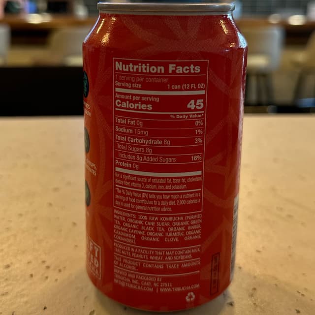 8g sugar and 15g of sodium. Better than most other kombuchas.