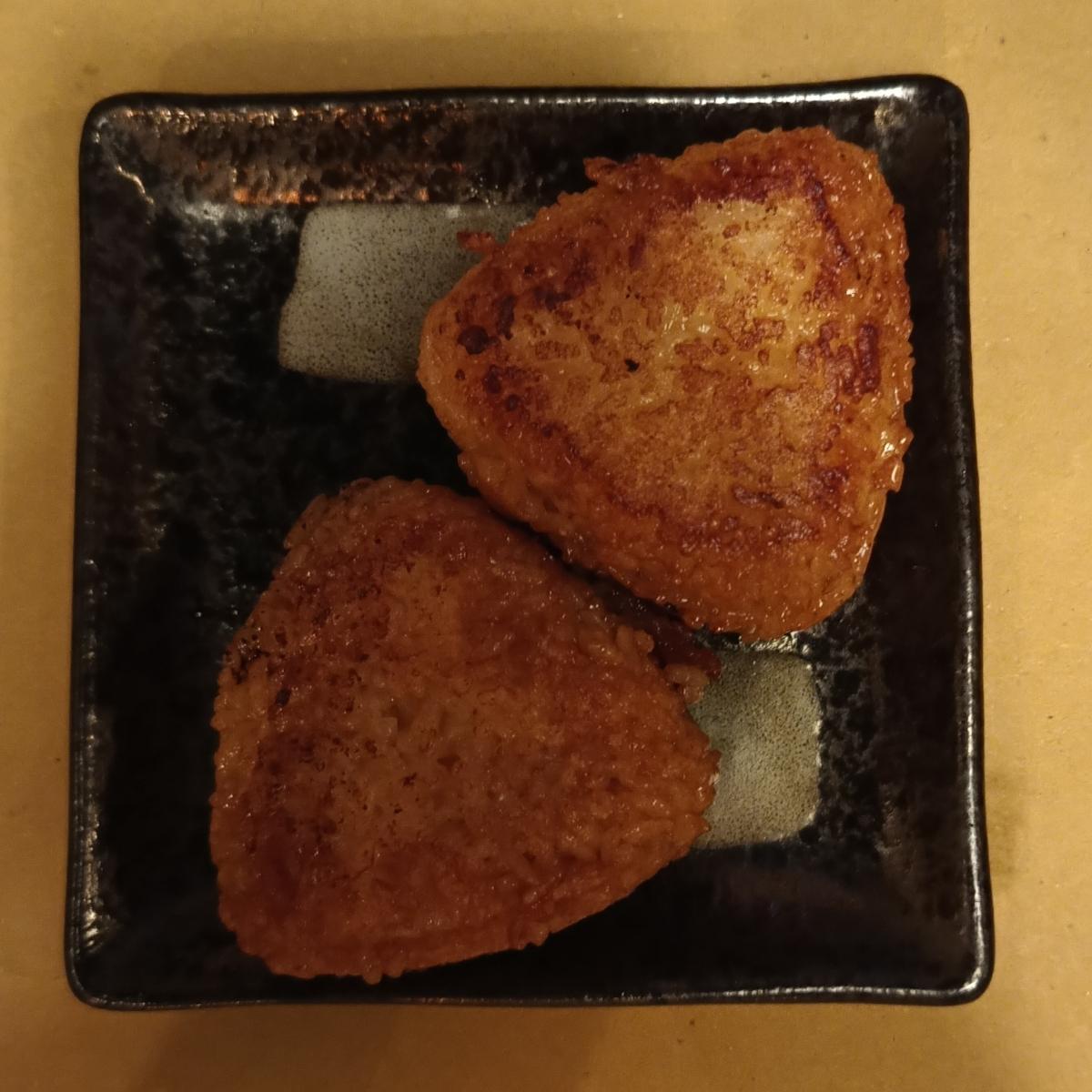 Riso cotto a vapore e saltato con salsa di soia nella forma classica degli Onigiri.Molto buoni
